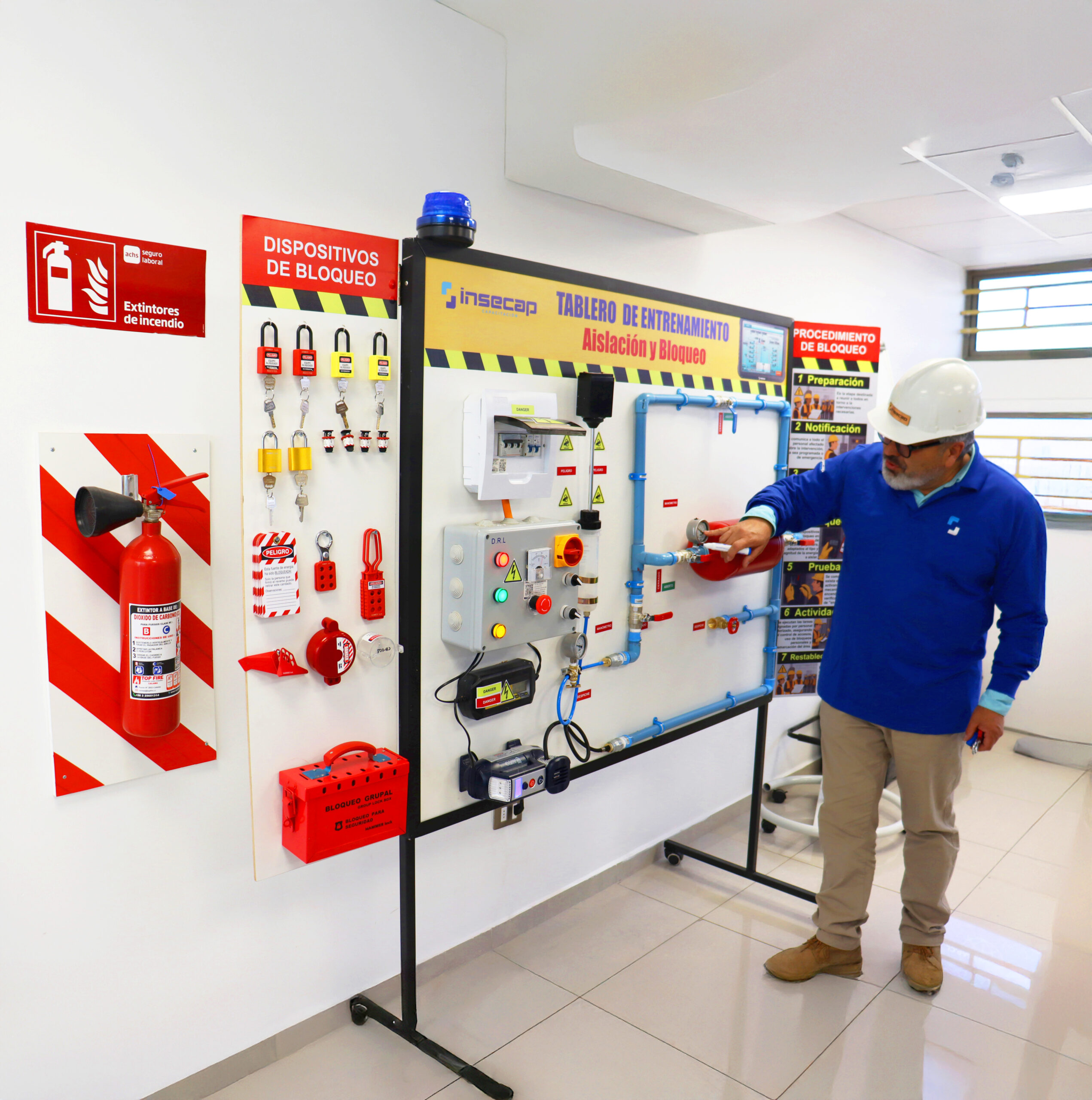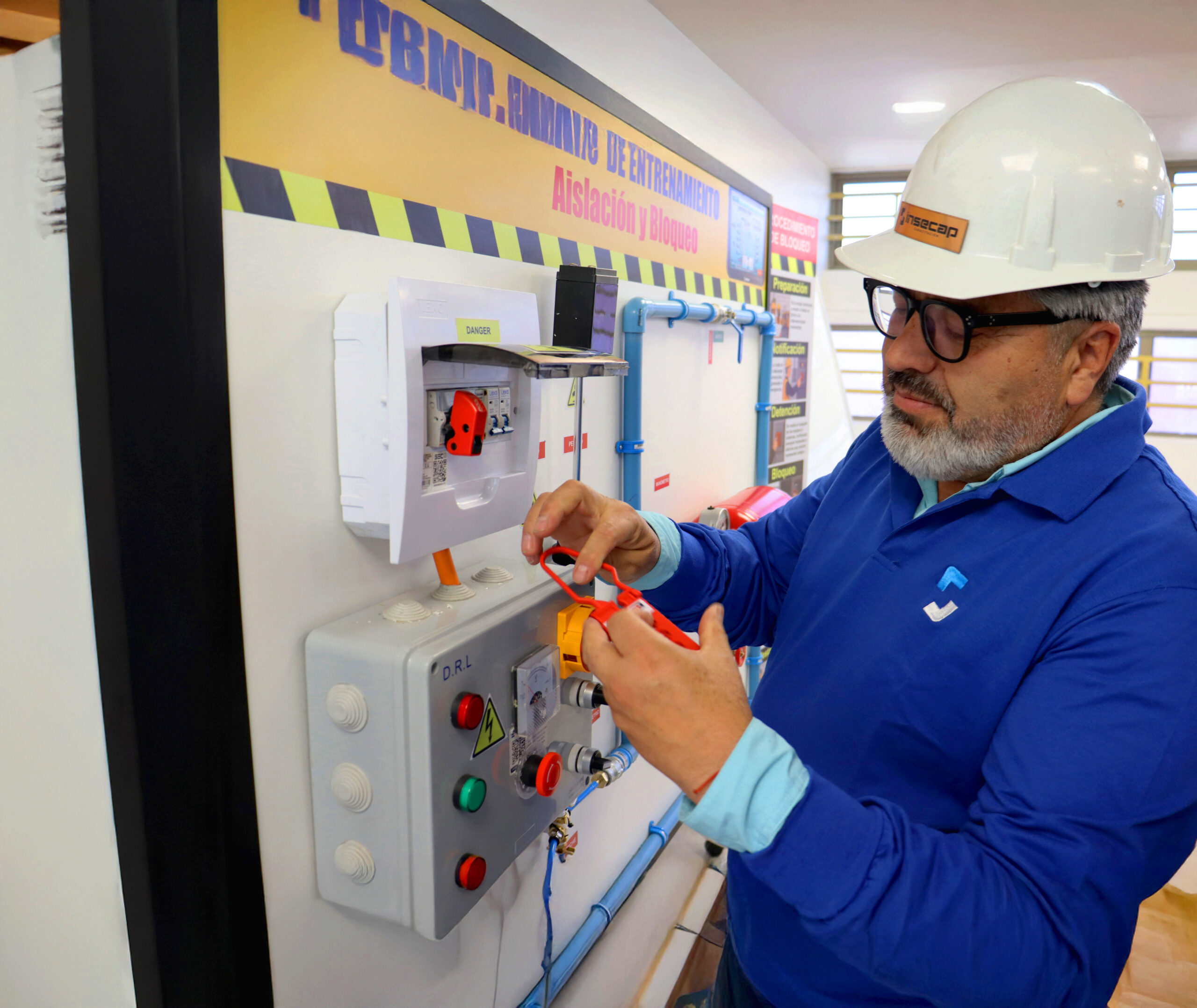 INSECAP continúa innovando en capacitación técnica y preventiva con la incorporación de su Simulador de Sistema de Bloqueo Eléctrico (LOTO), una herramienta diseñada para fortalecer el aprendizaje práctico y seguro en procedimientos críticos de control de energías.